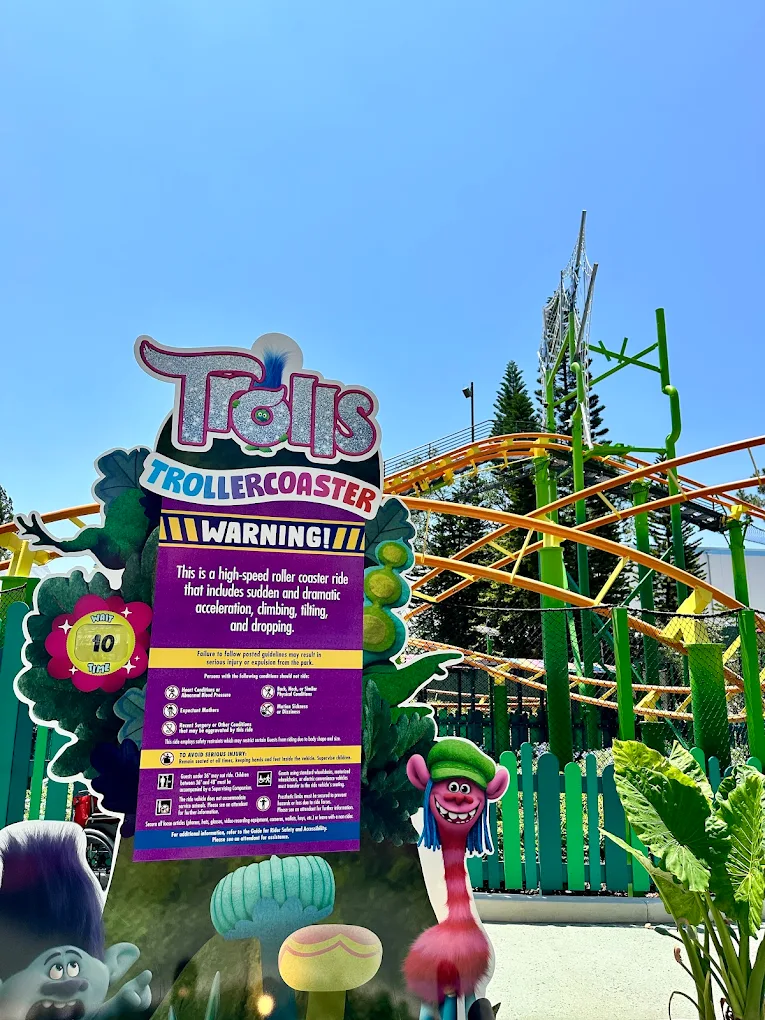 • Trolls Trollercoaster ⭐️⭐️⭐️⭐️: montaña rusa suave y colorida, perfecta para chicos.