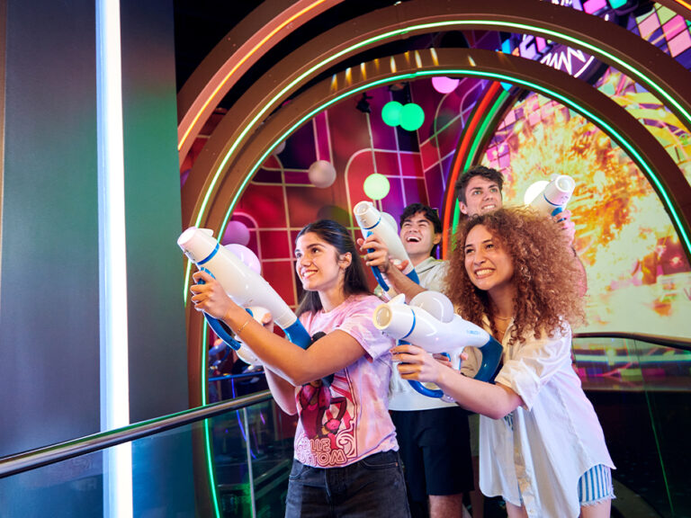 • Villain-Con Minion Blast ⭐️⭐️⭐️⭐️: experiencia interactiva con pistolas láser donde los visitantes compiten por puntos.