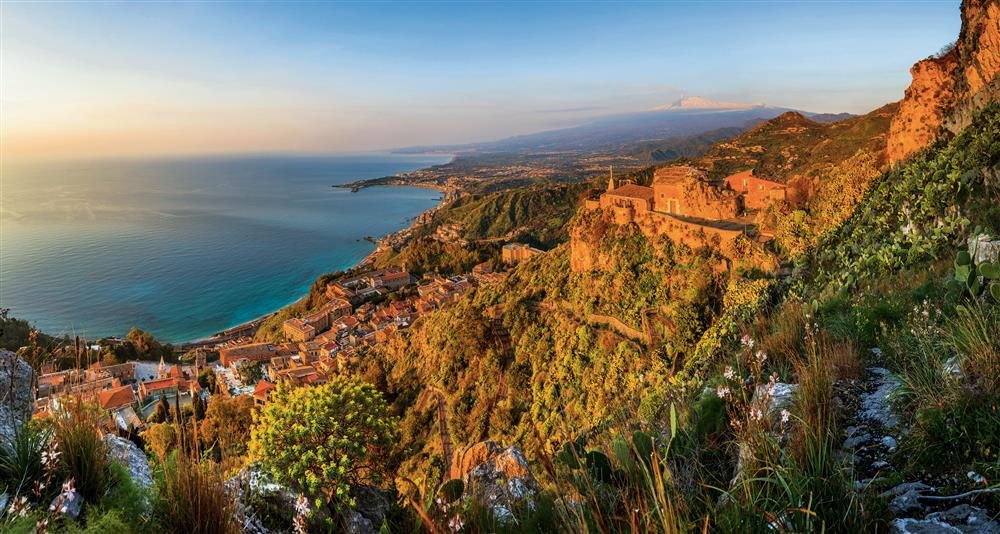 Apenas 50 kilómetros más adelante se alcanza el mayor espectáculo de esta costa: Taormina. En sus pintorescos parajes, la burguesía finisecular de media Europa festejó su amor a las ruinas y al legado griego. El viajero de hoy en día también cae rendido ante el teatro griego, el Duomo –que empezó siendo románico pero que acabó con una portada barroca– y el Corso Umberto, la calle más animada de la ciudad, jalonada por tres puertas y varios palacios e iglesias.