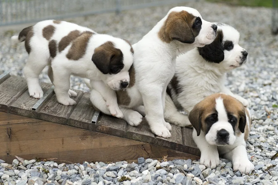 Cuatro cachorros de San Bernardo en una fotografía de archivo. EFE/ Thomas Delley